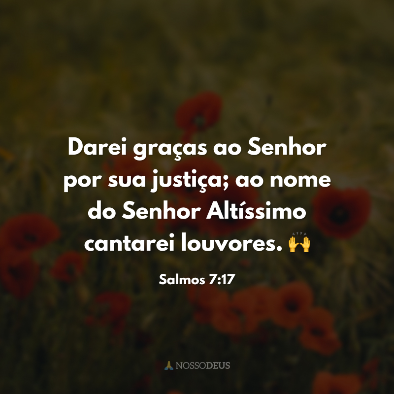 Darei graças ao Senhor por sua justiça; ao nome do Senhor Altíssimo cantarei louvores. 🙌