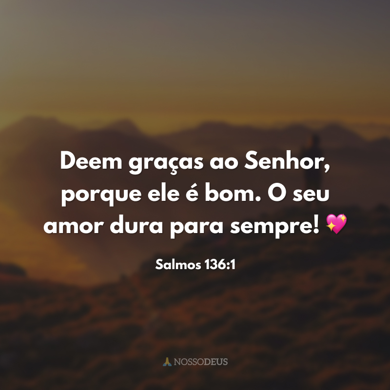 Deem graças ao Senhor, porque ele é bom. O seu amor dura para sempre! 💖
