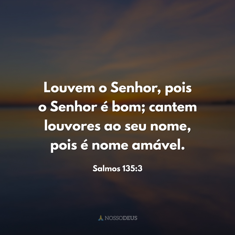 Louvem o Senhor, pois o Senhor é bom; cantem louvores ao seu nome, pois é nome amável.