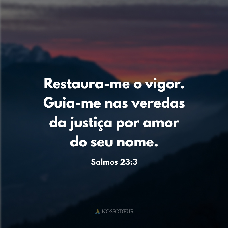 Restaura-me o vigor. Guia-me nas veredas da justiça por amor do seu nome.