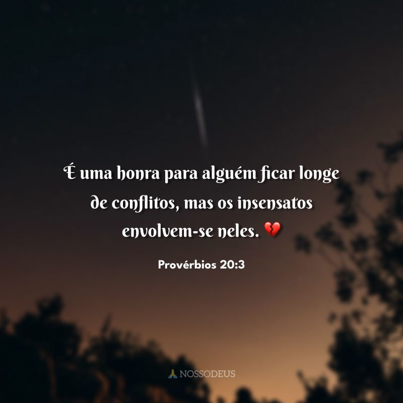 É uma honra para alguém ficar longe de conflitos, mas os insensatos envolvem-se neles. 💔