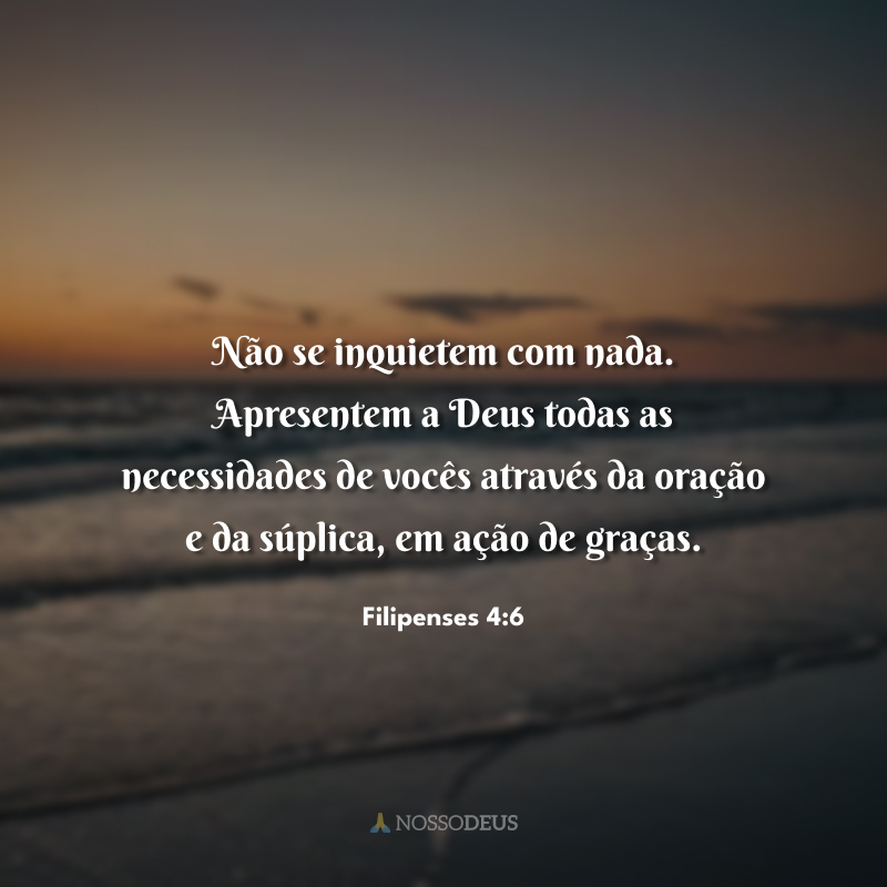 Não se inquietem com nada. Apresentem a Deus todas as necessidades de vocês através da oração e da súplica, em ação de graças.