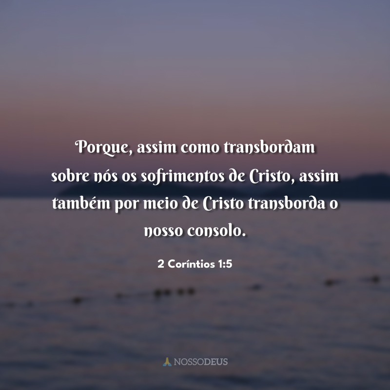 Porque, assim como transbordam sobre nós os sofrimentos de Cristo, assim também por meio de Cristo transborda o nosso consolo.