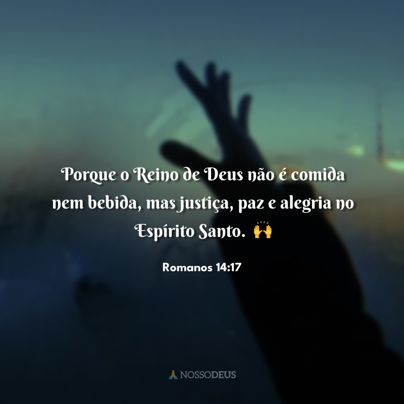 Porque o Reino de Deus não é comida nem bebida, mas justiça, paz e alegria no Espírito Santo. 🙌