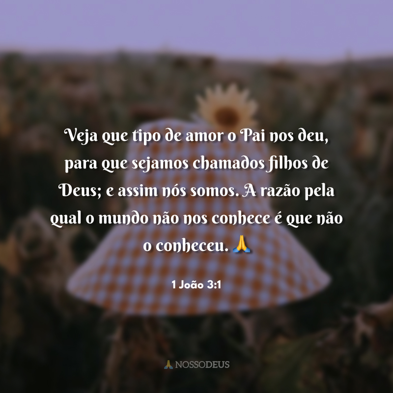 Veja que tipo de amor o Pai nos deu, para que sejamos chamados filhos de Deus; e assim nós somos. A razão pela qual o mundo não nos conhece é que não o conheceu. 🙏