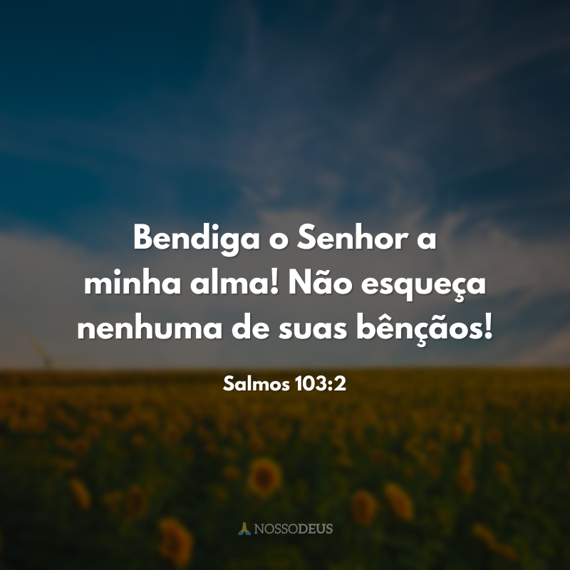 Bendiga o Senhor a minha alma! Não esqueça nenhuma de suas bênçãos!