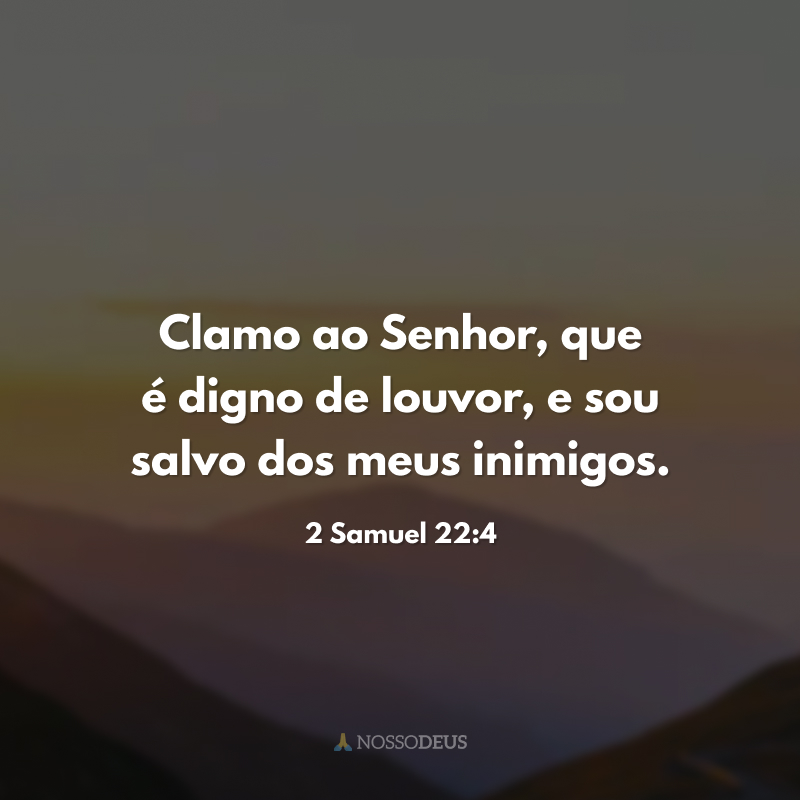 Clamo ao Senhor, que é digno de louvor, e sou salvo dos meus inimigos.