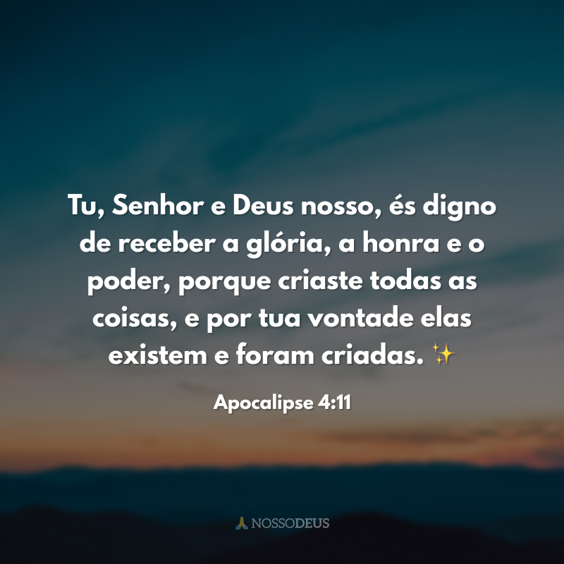 Tu, Senhor e Deus nosso, és digno de receber a glória, a honra e o poder, porque criaste todas as coisas, e por tua vontade elas existem e foram criadas. ✨