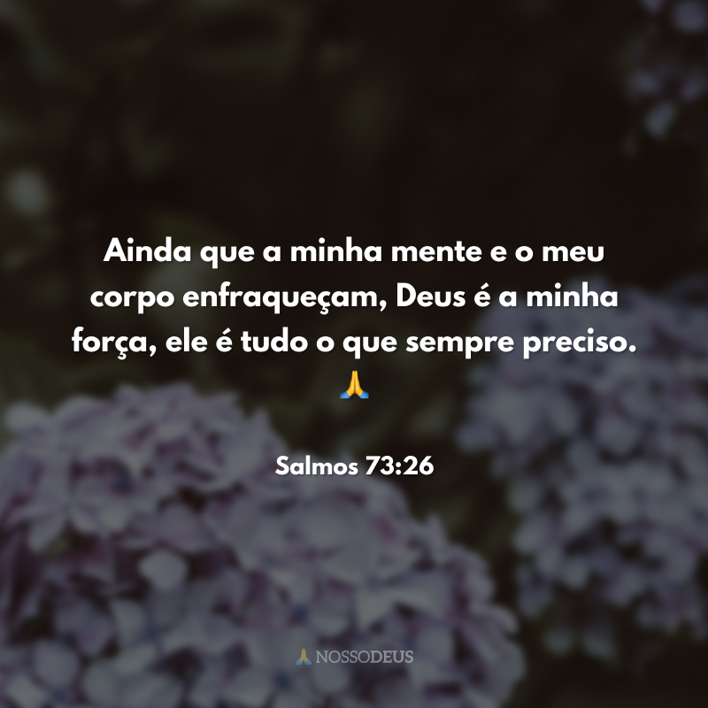 Ainda que a minha mente e o meu corpo enfraqueçam, Deus é a minha força, ele é tudo o que sempre preciso. 🙏