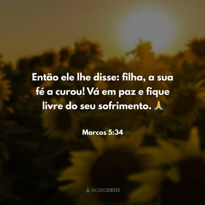Então ele lhe disse: filha, a sua fé a curou! Vá em paz e fique livre do seu sofrimento. 🙏