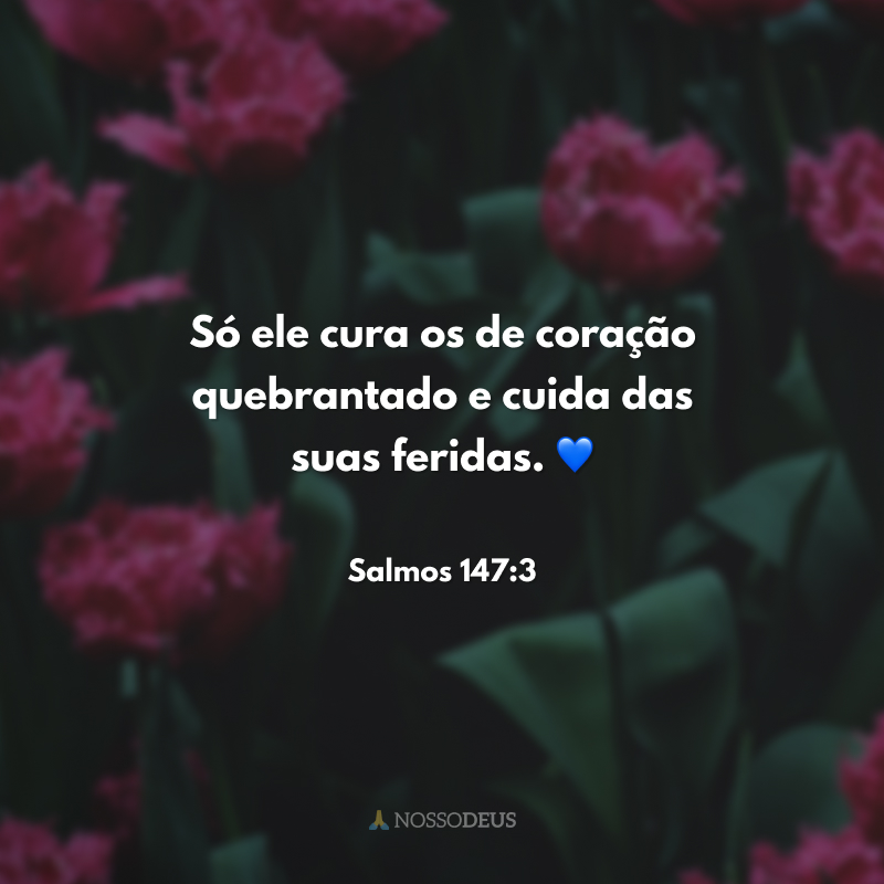 Só ele cura os de coração quebrantado e cuida das suas feridas. 💙