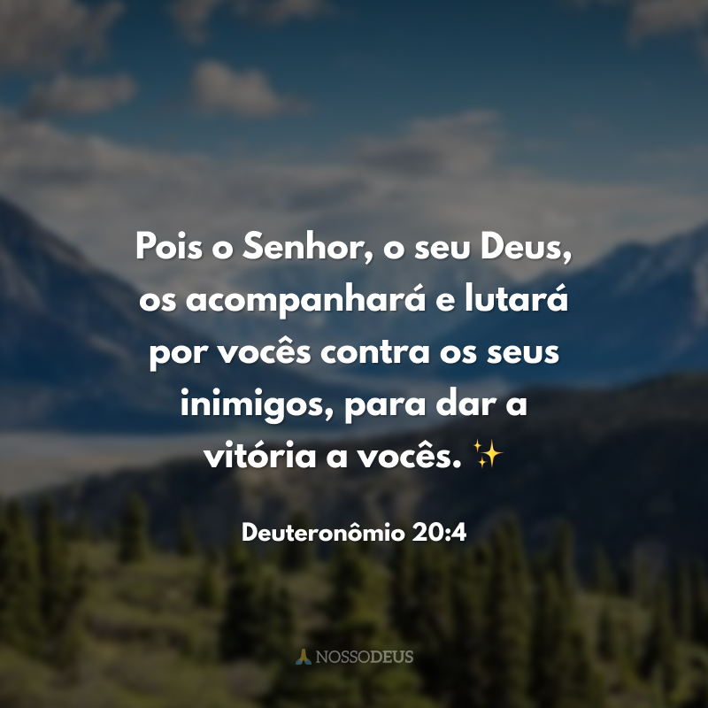 Pois o Senhor, o seu Deus, os acompanhará e lutará por vocês contra os seus inimigos, para dar a vitória a vocês. ✨