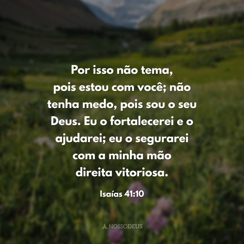 Por isso não tema, pois estou com você; não tenha medo, pois sou o seu Deus. Eu o fortalecerei e o ajudarei; eu o segurarei com a minha mão direita vitoriosa.
