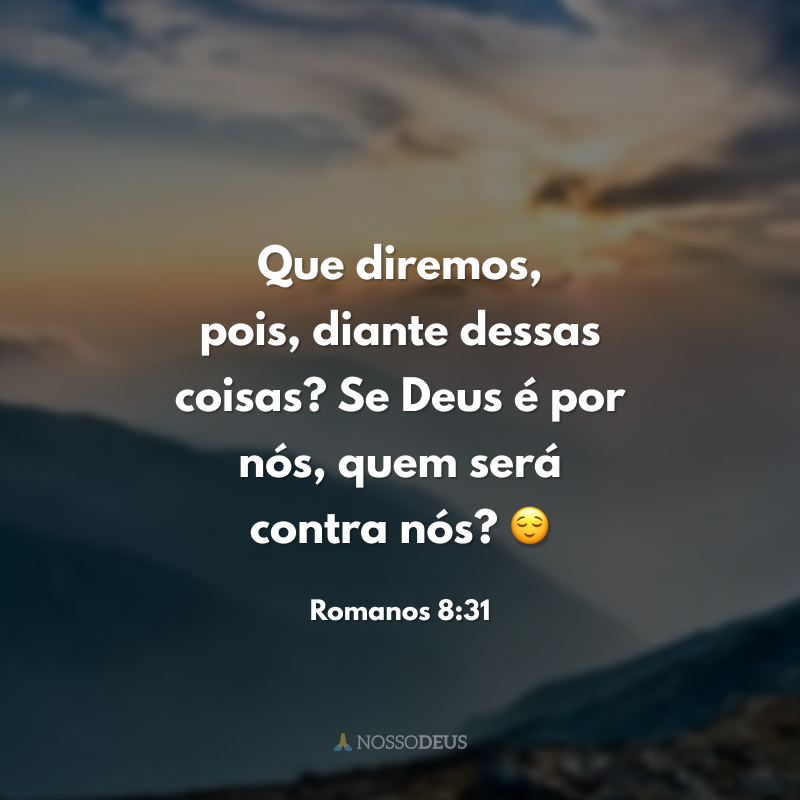 Que diremos, pois, diante dessas coisas? Se Deus é por nós, quem será contra nós? 😌