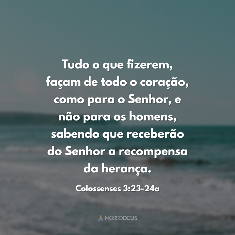 Tudo o que fizerem, façam de todo o coração 💖 , como para o Senhor, e não para os homens, sabendo que receberão do Senhor a recompensa da herança.