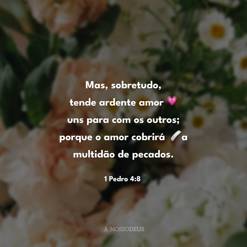 Mas, sobretudo, tende ardente amor💗 uns para com os outros; porque o amor cobrirá🩹 a multidão de pecados.