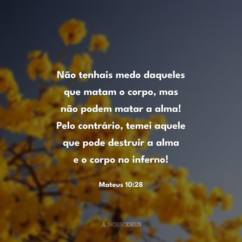 Não tenhais medo daqueles que matam o corpo, mas não podem matar a alma! Pelo contrário, temei aquele que pode destruir a alma e o corpo no inferno!