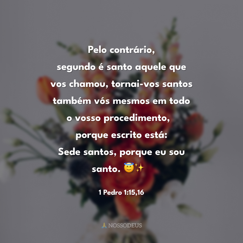 Pelo contrário, segundo é santo aquele que vos chamou, tornai-vos santos também vós mesmos em todo o vosso procedimento, porque escrito está: Sede santos, porque eu sou santo. 😇✨