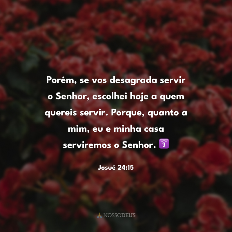 Porém, se vos desagrada servir o Senhor, escolhei hoje a quem quereis servir. Porque, quanto a mim, eu e minha casa serviremos o Senhor. 🛐