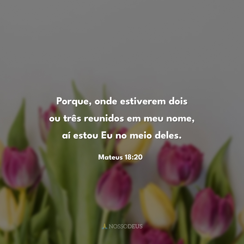 Porque, onde estiverem dois ou três reunidos em meu nome, aí estou Eu no meio deles.
