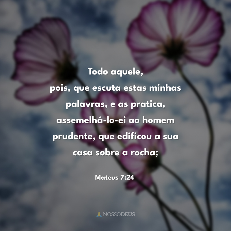 Todo aquele, pois, que escuta estas minhas palavras, e as pratica, assemelhá-lo-ei ao homem prudente, que edificou a sua casa sobre a rocha;