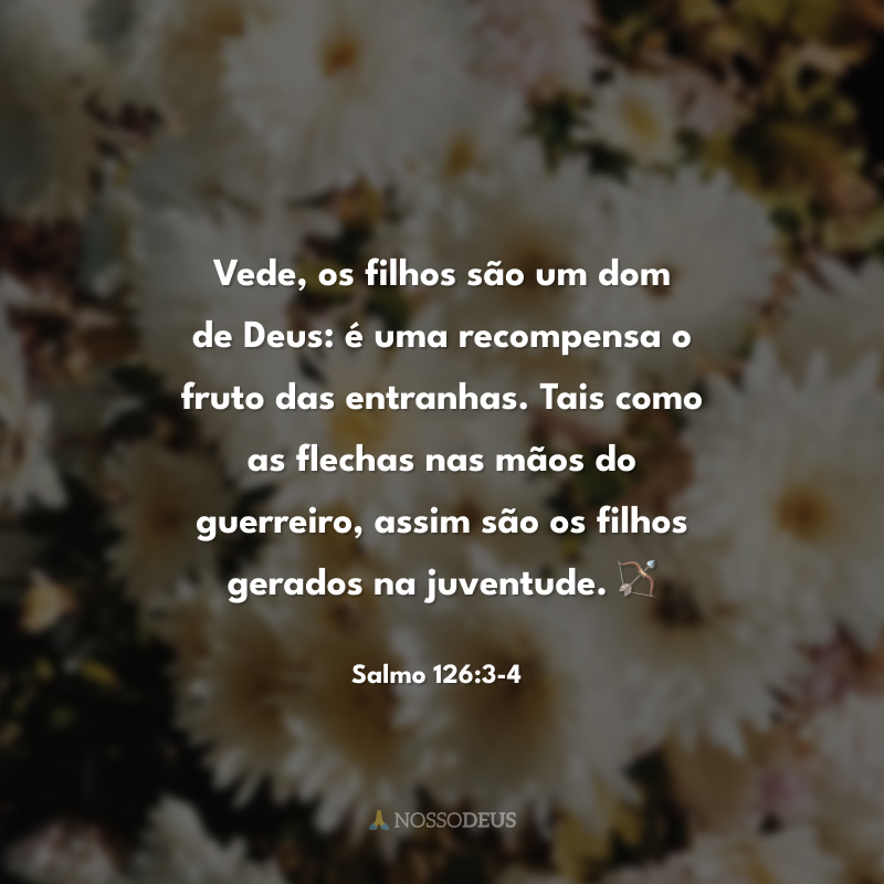 Vede, os filhos são um dom de Deus: é uma recompensa o fruto das entranhas. Tais como as flechas nas mãos do guerreiro, assim são os filhos gerados na juventude. 🏹