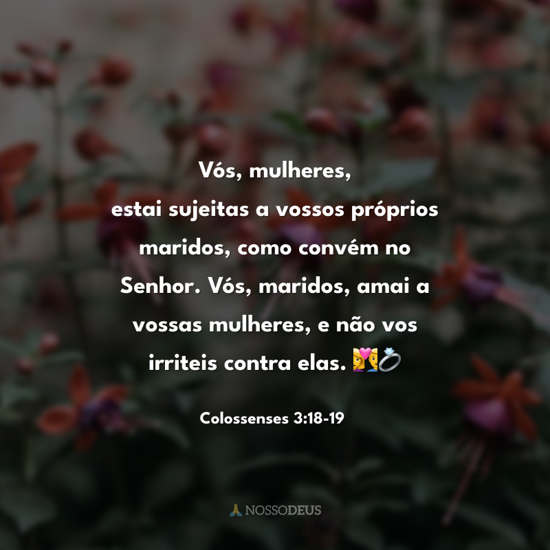 Vós, mulheres, estai sujeitas a vossos próprios maridos, como convém no Senhor. Vós, maridos, amai a vossas mulheres, e não vos irriteis contra elas.👩❤️👨💍